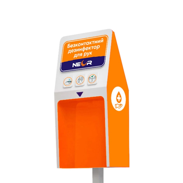 Ця модель сенсорного дезінфектора ідеальне рішення для громадських закладів з великим потоком людей. Він має металевий корпус та розміщений на ніжці. Живиться від мережі, що дає можливість заощадити на постійній заміні батарейок.